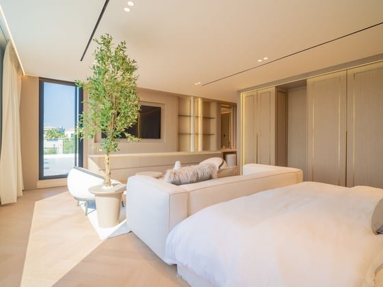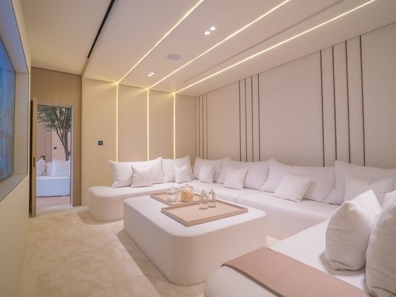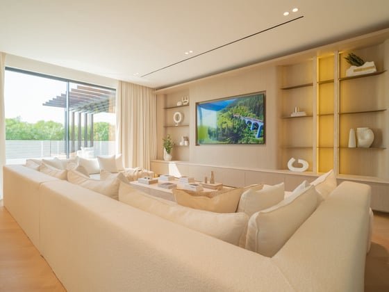 This remarkable villa is set within the exclusive Jumeirah Golf Estates. This elegant four-bedroom, five-bathroom home spans an impressive 9,700 sq. ft., providing exceptional space, comfort, and refinement for modern family living. Every corner reflects sophistication — from its designer interiors to sweeping views across the golf course and beautifully manicured gardens.